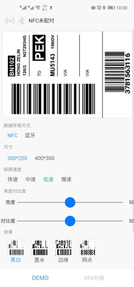 这是一个电子行李牌项目,行李牌需要手机NFC供电,然后通过蓝牙或者NFCA传输数据,显示在墨水屏上。 Android可以通过蓝牙和NFCA传输,iOS通过蓝牙传输。