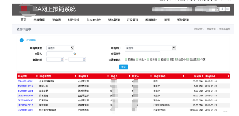 OA网上报销系统是作为员工日常差旅计划、差旅报销、借款、日常费用报销供应商付款的基础平台,本系统包含OA网上报销系统业务流程、项目类费用报销业务流程。 流程分为:差旅计划; 借款流程中分为两个:差旅借款、日常借款;供应商付款;差旅报销;业务招待费报销;日常报销。